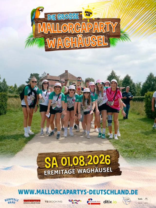 Am Samstag, den 01.08.2026 verwandelt sich das traumhafte Gelände der Eremitage Waghäusel erneut in den größten Mallorca-Party-Hotspot Süddeutschlands!
